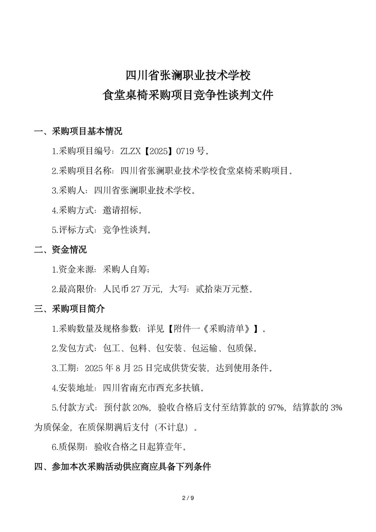 张澜职校食堂桌椅采购项目竞争性谈判文件.docx